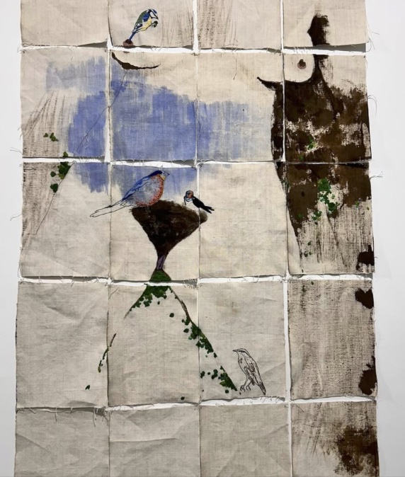 L’idée de cette exposition est née d’une singularité acoustique propre à la galerie : une grande baie vitrée s’ouvre sur le jardin, et chaque printemps, lorsque la fenêtre coulissante est entrouverte, les chants d’oiseaux envahissent l’espace avec une intensité telle que certains visiteurs s’interrogent sur l’origine de cette mélodie. Il arrive qu’on doive les guider vers l’extérieur pour qu’ils en prennent pleinement conscience. Ce moment d’enchantement, où la nature s’invite dans l’art, a inspiré le projet d’une exposition dédiée aux oiseaux, dont l’ouverture coïncidera avec la saison des chants.
