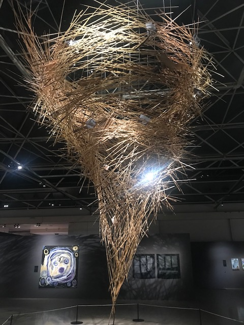 De la première partie ancienne, on enchaîne sur une deuxième contemporaine, tout aussi intéressante, mélange de savoirs ancestraux et avancées sociales. On est surpris par « Kulata Tjuta », une magistrale installation composée de 1500 lances qui forment un tourbillon de poussières et de débris au puissant pouvoir symbolique. Perçu comme une manifestation de l’esprit des défunts dans la société traditionnelle, elle symbolise aussi la direction dans laquelle elle évolue : « le grand vent du changement qui s’est opéré à l’arrivée de l’homme blanc sur nos terres. »
