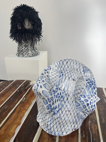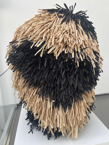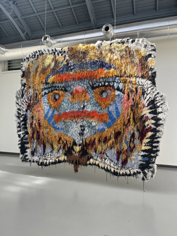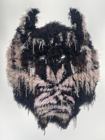 Sous la magnifique lumière de La Verrière de la Fondation Hermès à Bruxelles, on découvre les tapisseries en laines tuftées à la main, les têtes en raphia, métal, mousse, tissu et céramique, les collages en papier ou satin, les pastels et même le mobilier en pin, ciment, marbre et bois de l’artiste multimédia Caroline Achaintre, née à Toulouse en 1969 qui, après avoir étudié e.a. à la prestigieuse Goldsmiths University à Londres y vit et y travaille.
