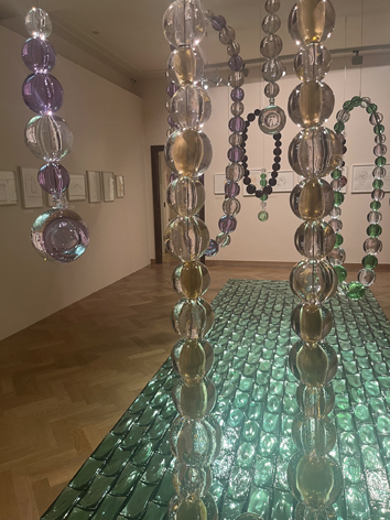 En effet, derrière le côté très accessible et séduisant des sculptures ludiques de l’artiste français Jean-Michel Othoniel (1964, Saint-Étienne) se cache un chemin de voyages de par le monde, nourrissant tout un imaginaire qui s’est construit depuis 40 ans au fil des sensibilités, des émotions mêlées à du savoir-faire, générées par ces rencontres et dont sont témoins ici des dizaines d’aquarelles d’une qualité, d’une finesse d’une beauté remarquables. À la fois, le volet le plus discret et peut-être le plus important du propos.