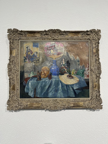 Au centre de l’exposition se trouve la « Nature morte avec chinoiseries » de James Ensor, issue de la collection du MDD. Une œuvre qui représente des objets importés – tissus, céramiques, éléments décoratifs – et incarne une perspective occidentale sur des contrées lointaines.