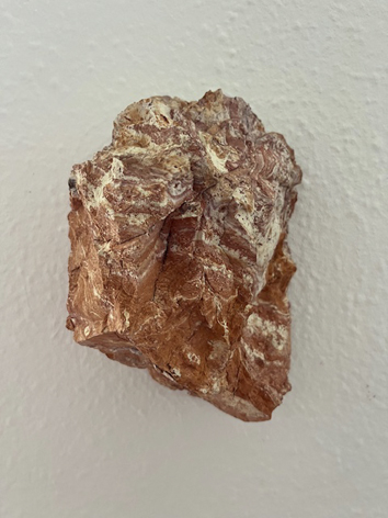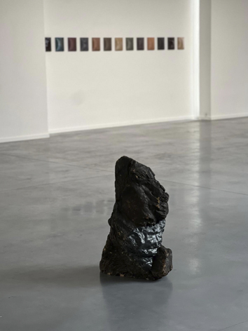 Dekyndt explore ici, comme à son habitude, la transformation de la matière ainsi que les phénomènes physiques à travers tous les médias comme la vidéo, la photographie, le son et l’installation, focalisée sur l’interaction entre le temps, la nature et les objets du quotidien. Exemple : elle a ramassé des morceaux de calcaire dans une carrière chez des amis en Belgique et elle les a cuits dans un four pendant des heures. Presque tous ont explosé, sauf un qu’elle a continué à cuire et recuire et le voilà exposé ici telle une magnifique pierre : « une transformation qui a eu lieu en quelques heures au lieu de quelques siècles » dit-elle avec la fierté de l’inventeur. (cfr photo jolie pierre rouge/orange)