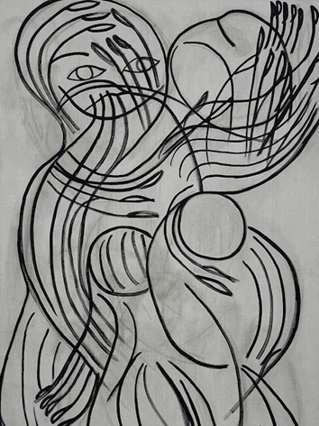 Entre abstraction et figuration, portraits et formes géométriques, avec le dessin comme fil conducteur, l’artiste, née en 1954 à Marangu au pied du Kilimandjaro découvre en Europe un autre monde en même temps qu’un autre langage visuel, mieux une parole, avec laquelle elle tisse depuis des liens solidaires.