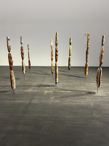 Et encore, pour ne parler que des deux qui m’ont le plus marquée, Xavier Arenós qui, avec sa « Teorética del pan » (2019) en référence à une sculpture d’Alberto Sanchez, l’une des œuvres du Pavillon espagnol de l’Exposition universelle de Paris en 1937 a réalisé huit sculptures faites de pains artisanaux de hauteur différente, qui représentent la taille corporelle moyenne de la classe ouvrière en Espagne, reflet du manque de nourriture dans certaines régions.