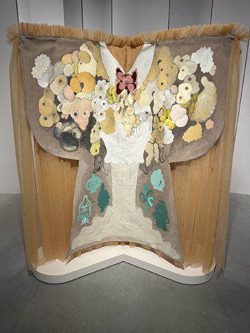 Cinq salles où l’on déambule dans un curieux univers entre peintures, dessins, sculptures textiles – réalisées en toile de tableaux ! – aux formes hybrides à travers lesquelles elle interroge la matérialité et l’identité. Un univers protéiforme, en mouvement, flexible, amorphe, difficile à identifier qui bouscule les normes, entre représentation et abstraction.
